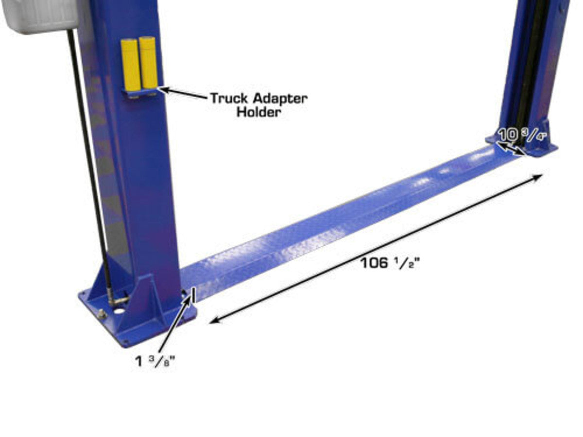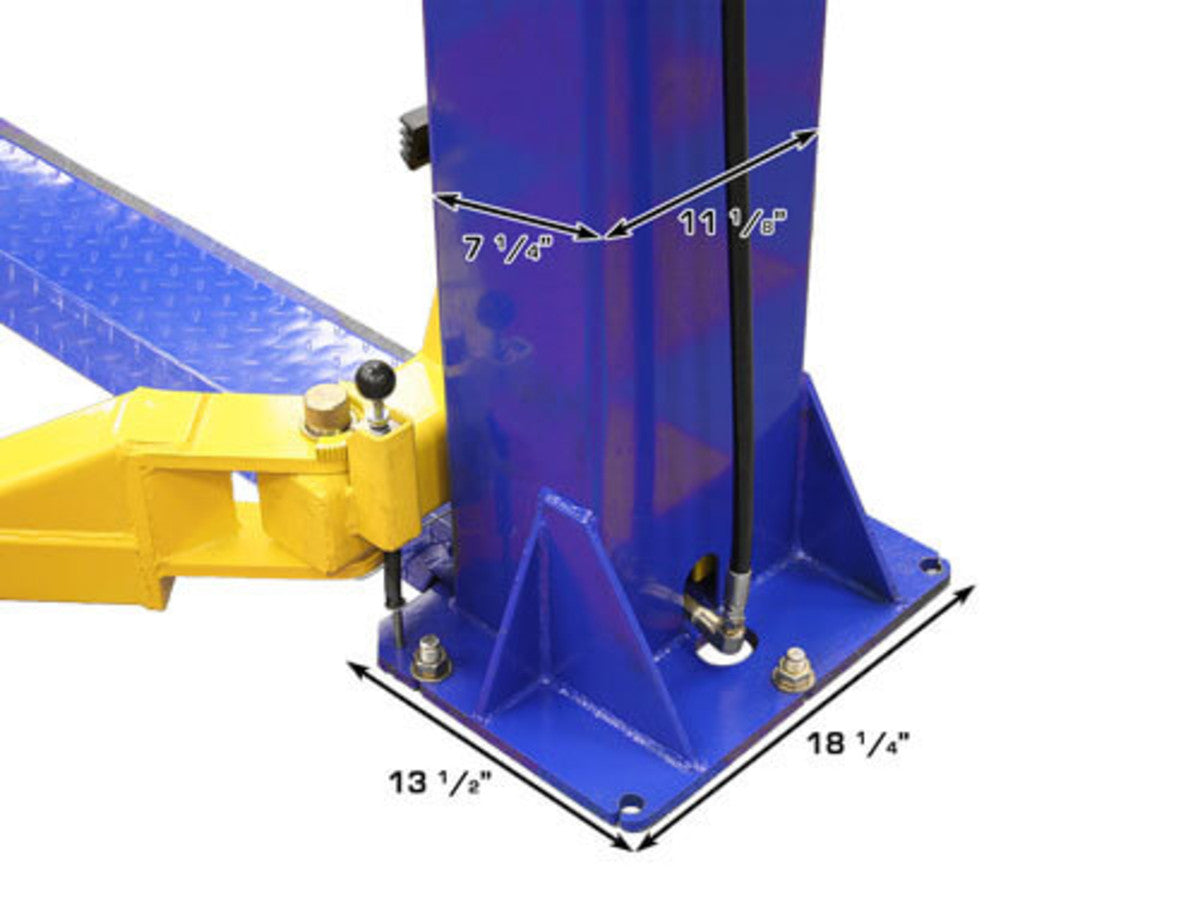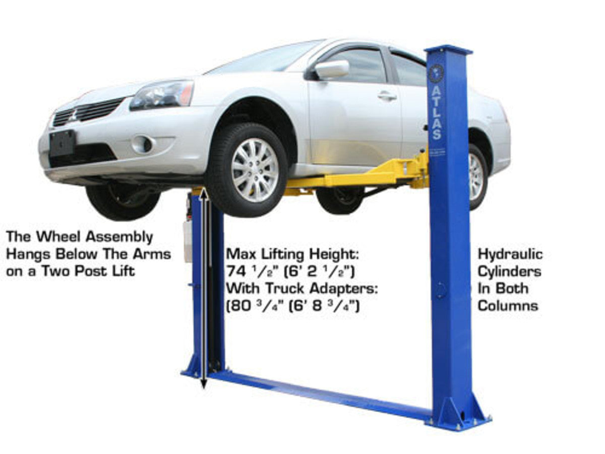 The Atlas® 9KBPX is an economically designed baseplate two-post lift great for low ceiling garages. The total column height of 111 �” (9 feet 3 � inches) allows this lift to be installed in almost any professional or home garage with a ceiling as low as 9 feet 6 inches. The Atlas® 9KBPX “chain over roller” lift features a spring loaded Secondary Lock System (SLS) that automatically engages in the event of a slack or broken chain. The reliable dual chain-drive cylinders, symmetric arms, and automatic arm restraints make this the perfect choice for “Mr. Homeowner” or small commercial shop looking to service cars, SUV�s and light duty trucks (not recommended to lift Diesel Dually or other large truck