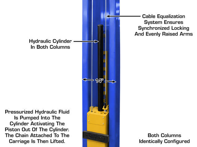 The Atlas Platinum PVL12 is an ALI Certified two post commercial grade 12,000 lb. capacity Heavy-Duty lift designed with the professional shop in mind. The low pad height allows this lift to accommodate both long wheel base trucks and passenger cars. The extra distance between the columns accommodates wider vehicles or vehicles with wide rearview mirrors. The extra height is perfect for tall vans and box trucks. The Platinum PVL12 is also ALI certified and backed by one of the industry's best warranties for an added peace of mind. The Atlas Platinum PVL12 features a premium ALLY power unit which is certified by MET Laboratories Inc. for electrical compliance in the United States and Canada. Extra heavy-duty armatures and more motor windings with increased silver metal included in the wires and connections create far less heat generation and allow ALLY Hydraulic power units to maintain constant torque through the lifting process. This power unit also carries an industry leading two-year limited warranty.