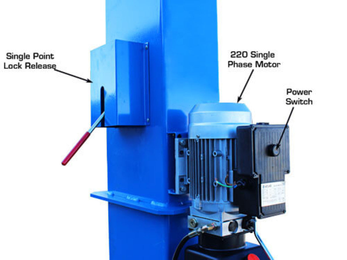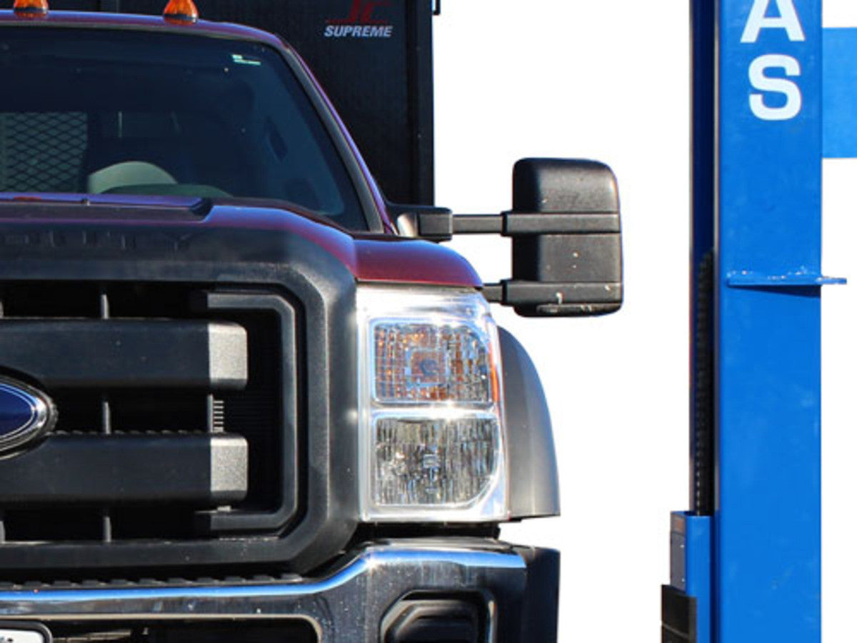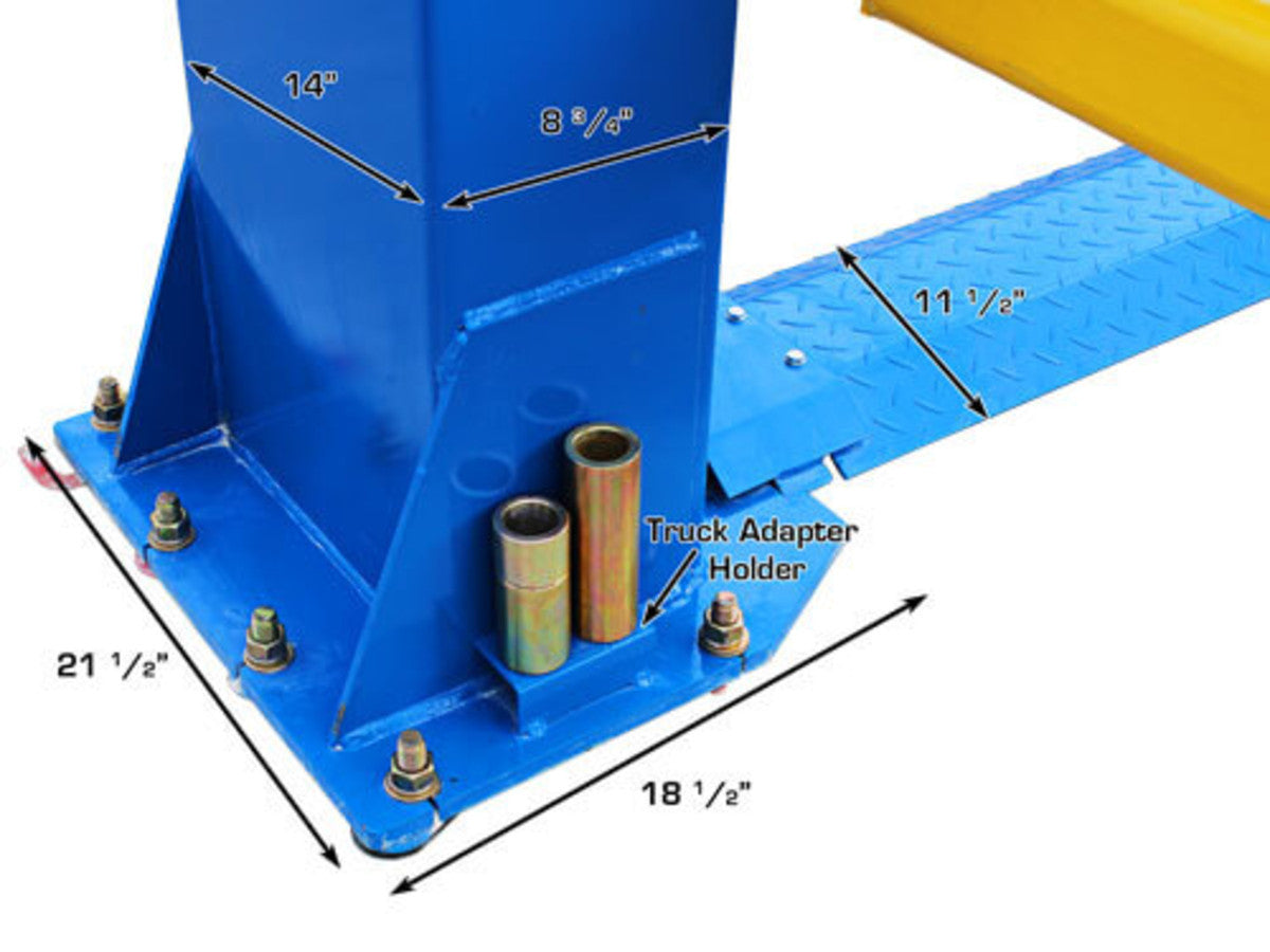 The Atlas BP12000X is a commercial grade heavy duty 12,000 LB. capacity 2 post base plate above ground lift. This above ground lift has over sized columns, symmetric three stage arms, and single point lock release. This lift is perfect for those commercial garages that want to lift heavier vehicles but have limited ceiling height. The Atlas BP12000X can be installed at two different width settings to accommodate wider trucks or trailers and to facilitate “driving between” the lift columns.