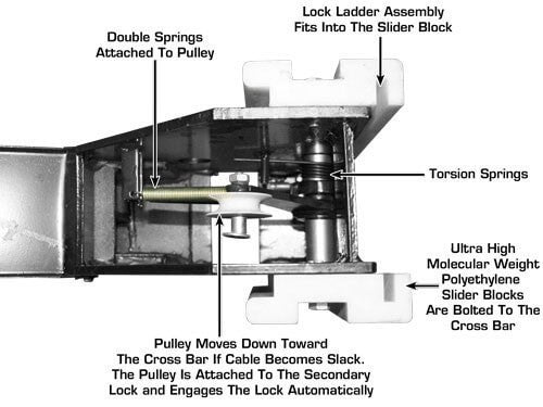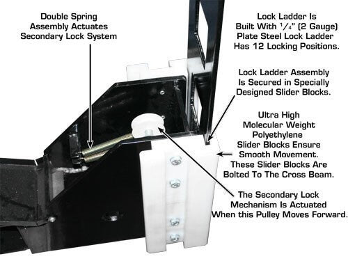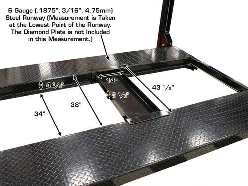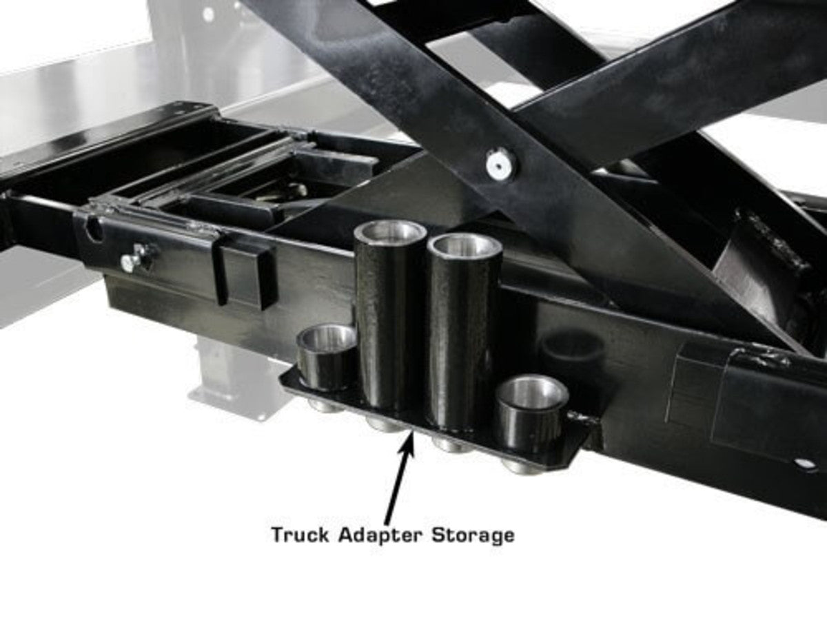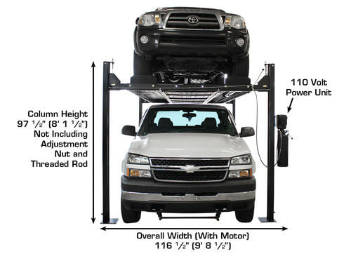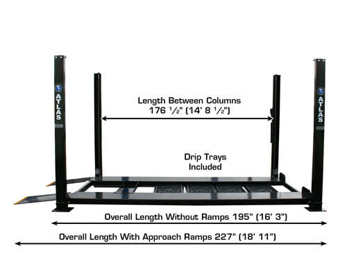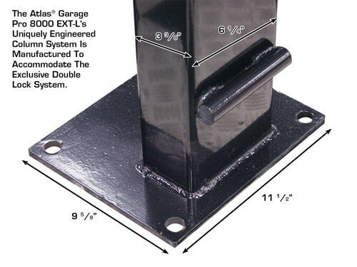 The Garage PRO8000EXT-L features the extra lifting height of the PRO8000EXT but is also 20 inches longer and 3 inches wider. Or to compare to the original, the Garage PRO8000EXT-L is 20 inches longer, 3 inches wider, and 14 inches taller than the standard Atlas® Garage PRO8000! The extra runway length will accommodate almost all of the longer wheelbase pickup trucks, except duallys. This is because the dual rear wheels are TOO WIDE to fit between the column lock assemblies. Check out the Atlas® Garage PRO9000 if you need a portable lift for your dually!