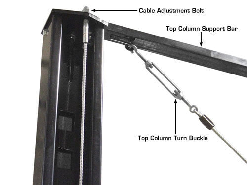 The Atlas Garage PRO7000ST is the perfect lift for those car enthusiasts lucky enough to have extra tall ceilings and need to store regular height vehicles on top of extra tall vehicles. The PRO7000ST raises vehicles weighing up to 7,000 lbs. all the way to over 12 feet (144 inches) under the runway. This super tall four post storage lift uses the same heavy duty runways as the Atlas Garage PRO9000. The runways feature welded tracks which allow the use of a rolling bridge jack (such as the Atlas RJ6BK ) . The extra tall lifting height gives customers the space needed to park much taller vehicles under the vehicle stored on top. There are a whopping 21 locking positions in the lock ladder, and the lock ladder may be adjusted during installation giving an almost infinite number of locking heights. A single point release toggle (located next to the power unit) automatically unlocks all four spring loaded pneumatic locks. Compressed air is required to disengage the locks (air supply not included). The emergency slack cable secondary lock system is always “on standby” and will engage automatically if the cables are compromised or become too slack.