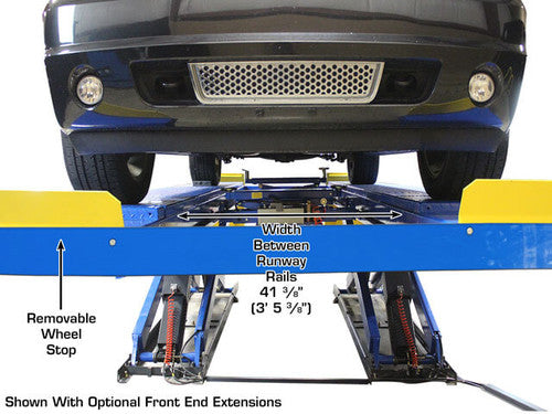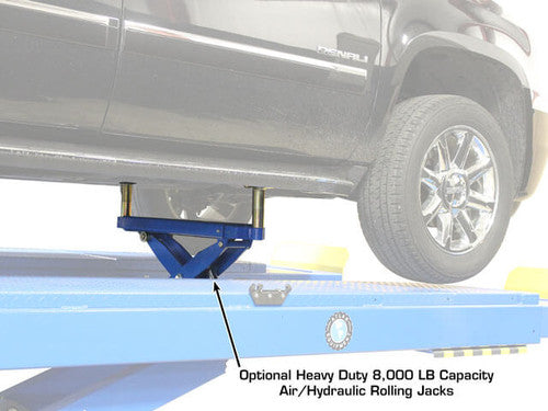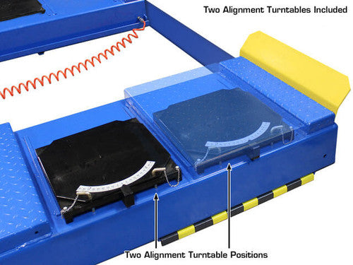 The Atlas® PX16A includes a set of turntables and the runway jack rail is designed to accommodate optional rolling jacks (like the Atlas® RJ8000BK). The lift is equipped with a semi enclosed air line kit routing system to accommodate the optional airline kit. This air line kit will provide air to the rolling jacks and prevent shop air hoses from cluttering the floor.