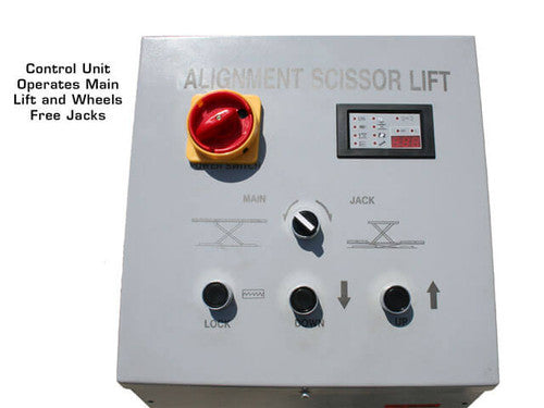 The Atlas® 12AWFSL 12,000 lb. scissor alignment lift has all the same features as the Atlas® 12ASL lift, but with the addition of built-in runway lifts known as the "Wheels Free" lifting system. When a vehicle is loaded on the 12AWFSL lift, the "Wheels Free" jacks will raise the car by the frame, lifting it so the wheels come off the runways for easier access and to facilitate alignments. The "Wheels Free" jacks are conveniently controlled at the lift's control console.