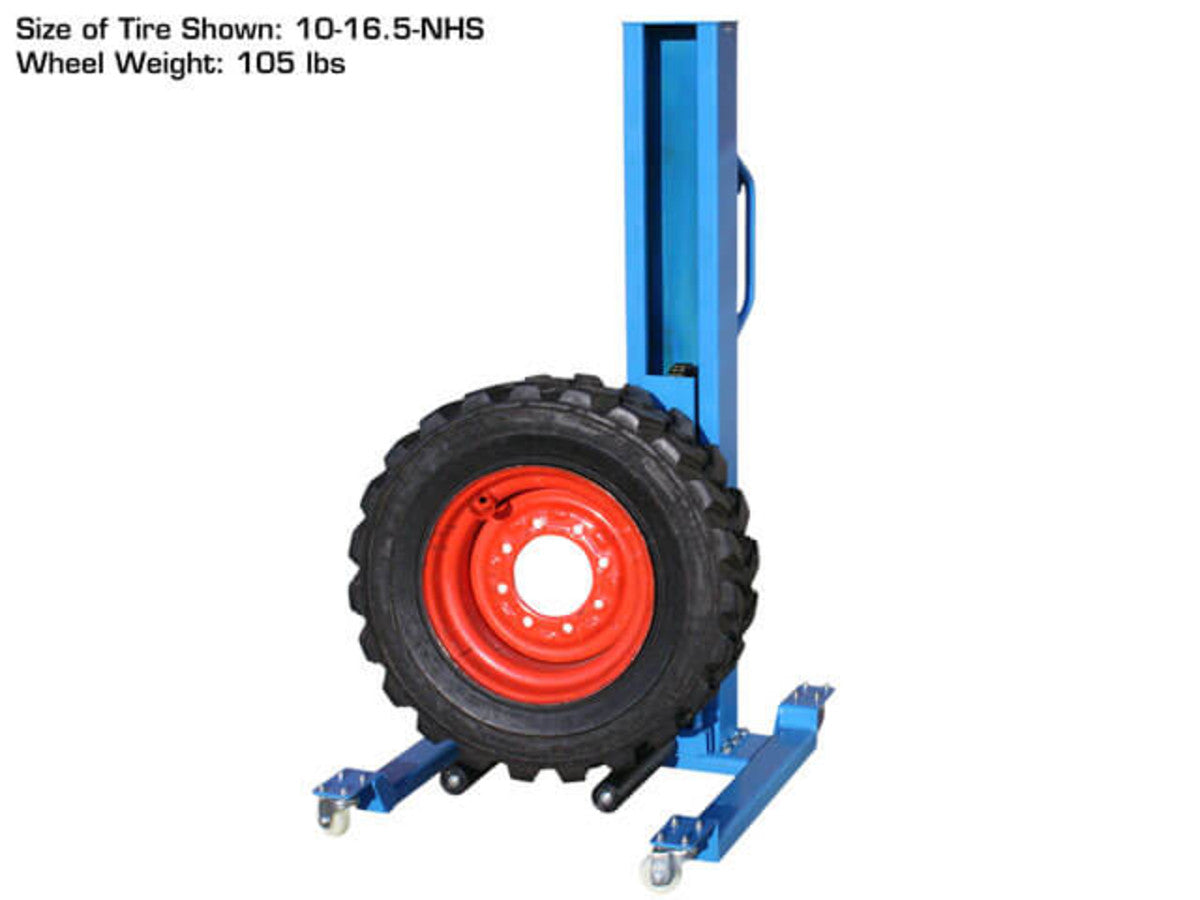 The Atlas Offset Pneumatic Portable Wheel Lift (AEZWL-2) is the perfect solution to prevent back injuries when lifting large wheel assemblies onto the shaft of a wheel balancer, onto a tire changer turntable, or even removing or installing tires on a car raised on a scissor or 2-Post lit. Today's wheels and tires are getting bigger and heavier. Many wheels are expensive and can be easily scratched or damaged. The Atlas Offset air operated wheel lift will lift up to a 180 pound wheel easily and allow the operator to maneuver the wheel into the correct position without fear of wheel damage or back strain. The AEZWL-2's smooth air operation requires only 116-145 PSI air pressure and the 4 swivel casters make it easy to move and position where needed.