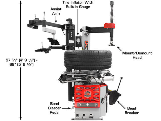 The Atlas Platinum PTC300 represents the evolution of the most familiar tire changer configuration found in high volume tire shops around the world. The PTC300 is an Italian engineered Swing-Arm Tire Changer that comes standard with a Left-Hand Bead Pressing and Bead Lifting Assist Arm to make changing the most challenging tires a breeze. The PTC300 boasts a 26-inch clamping capability, high torque 110V electric turntable, anodized aluminum bead breaker cylinder, integrated bead blast system, and a 2-year warranty. The Atlas Platinum range of wheel service equipment incorporates the highest quality Italian designed components and engineering to assure it is the best value available at its price point. The Atlas PTC300 requires some assembly after purchase.