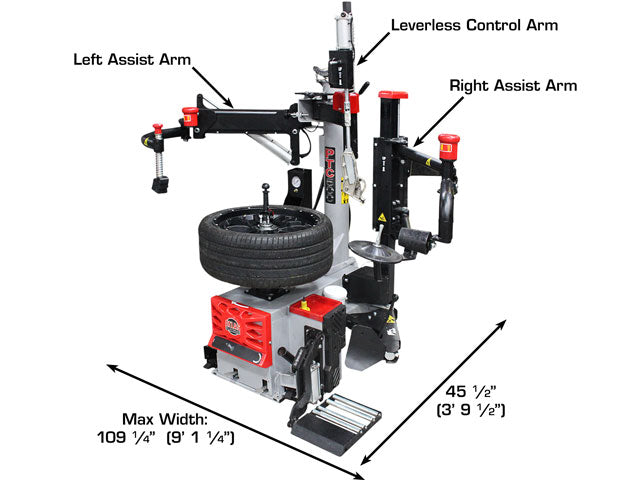 The Atlas Platinum PTC500 center post tire changer is designed for high-volume tire shops that deal with the most challenging wheel and tire combinations in the market. The Atlas Platinum PTC500 includes patented, innovative features that make it stand out from the competition! The first of these is the “Lever/No-Lever System” which allows the machine to be used with a standard tire tool/lever or in a “leverless” mode with no manual tools required. The second outstanding feature is the “Smart Lock” system which allows the tire to be mounted and immediately locked in position with a flip of the lever which eliminates the need to manually thread the center cone or to maintain a complicated pneumatic locking system. The external bead seating system makes inflating even the most challenging tires a breeze. Finally, the integrated wheel lift helps reduce employee lifting injuries or damage to expensive wheels. The Atlas Platinum range of wheel service equipment has a 2-year warranty and incorporates the highest quality Italian designed components and engineering to assure it is the best value available at its price. For a Demount and Mount demonstration video click here .
