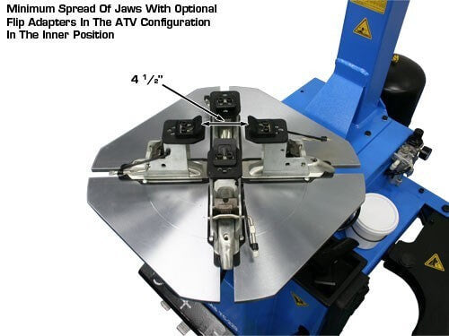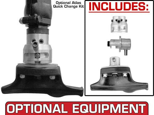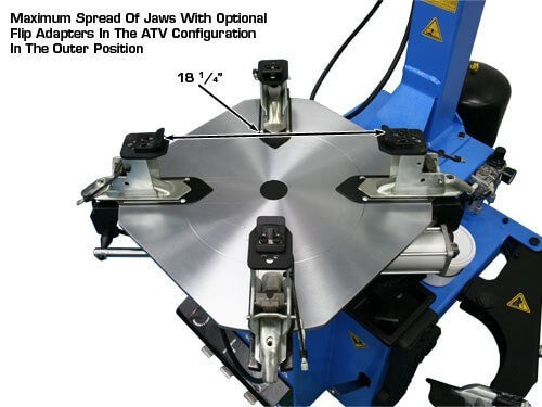The Atlas TC229 rim clamp, swing arm tire changer is the perfect machine for homeowners, a small commercial garage or an ATV/Motorcycle dealer. The TC229 has the same clamping range and tire changing capabilities of the Atlas TC221 tire changer, but has the added built in “Beadblaster” system. The “Beadblaster” system helps inflate stiff sidewall or other “hard to inflate” tires. If you are plan on changing larger pickup truck (1 ton), large SUV, or agricultural tires (either now or in the future), you may want to consider the Atlas TC289 tire changer. The Atlas wheel clamp tire changers are designed to change the tires on both high priced alloy wheels and steel wheels without damaging the rim or the tire. The powerful bead breaker located on the side of the machine is designed to break even the most stubborn and rusted beads without damage to the rim. The turntable jaws (which can be covered with plastic covers) hold the rim securely without damaging the surface of the rim. These jaws can be moved to three different positions along the slide of the turntable to either increase or decrease the clamping range, and to handle the widest variety of tires. The Atlas TC229 requires some assembly after purchase.