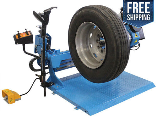 The Heavy Duty Atlas TTC305A automatic truck tire changer is designed and engineered to handle rim bore sizes from 8 inches to 26 inches and tire diameters in excess of 55 inches. The fully automatic Atlas TTC305A truck tire changer can easily accommodate tires with a maximum width of 30 1/2 inches. This automatic truck tire changer is the result of a joint venture between a very prestigious Italian wheel service manufacturer and the most well respected wheel service equipment manufacturer in Asia. The Atlas TTC305A truck tire changer features a single speed hydraulic chuck with five (5) locking rim positions. The ergonomic toggle control panel and foot pedals control the automatic operation of the truck tire changer. The main panel allows the technician to control the automatic movement of the chuck arm, the automatic positioning of the bead tool (raise and lower) and the automatic movement of the carriage to align the bead tool with the tire. The foot pedals control the rotational direction of the chuck. The Atlas TTC305A comes with a standard mount/demount head and a super fast roller head that can be swapped out in very little time. There is an emergency safety switch on the control panel that can stop all functions immediately. This is the perfect automatic tire changer for high production shops that change semi-tires, 19.5 tires and forklift tires. Quit using tire irons and a strong back! Let the Atlas TTC305A take the hard work out of changing those tires that are too big for your passenger tire wheel clamp tire changer.