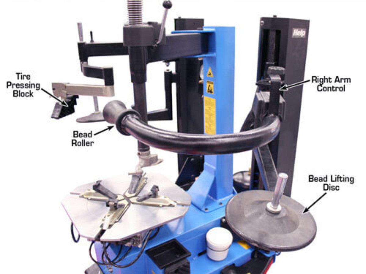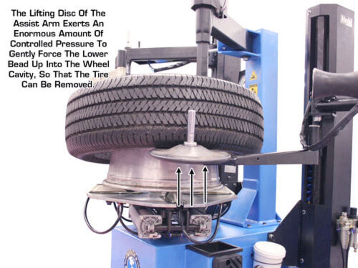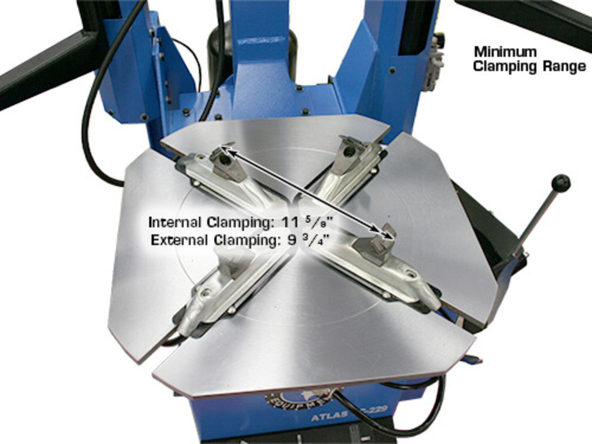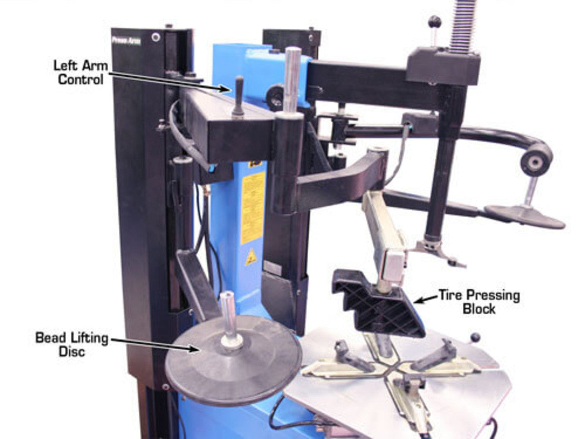 The Atlas TC229DAA rim clamp, swing arm tire changer is the perfect machine for homeowners, a small commercial garage or an ATV/Motorcycle dealer. This version of the TC229 comes with the Atlas DAA-SA dual assist arm package, made up of a left hand mounted arm with a pressing block and pressing/lifting disk and a right hand mounted arm with a pressing/lifting disk and bead roller. The dual assist arms are a necessary tool if you will be changing a high number of stiff sidewall, low profile, runflat style tires. The DAA acts as an extra set of hands saving a single user time and effort. The TC229 also features the added built in “Beadblaster” system. The “Beadblaster” system helps inflate stiff sidewall or other “hard to inflate” tires. If you are plan on changing larger pickup truck (1 ton), large SUV, or agricultural tires (either now or in the future), you may want to consider the Atlas TC289 tire changer. The Atlas wheel clamp tire changers are designed to change the tires on both high priced alloy wheels and steel wheels without damaging the rim or the tire. The powerful bead breaker located on the side of the machine is designed to break even the most stubborn and rusted beads without damage to the rim. The turntable jaws (which can be covered with plastic covers) hold the rim securely without damaging the surface of the rim. These jaws can be moved to three different positions along the slide of the turntable to either increase or decrease the clamping range, and to handle the widest variety of tires. The Atlas TC229DAA requires some assembly after purchase.