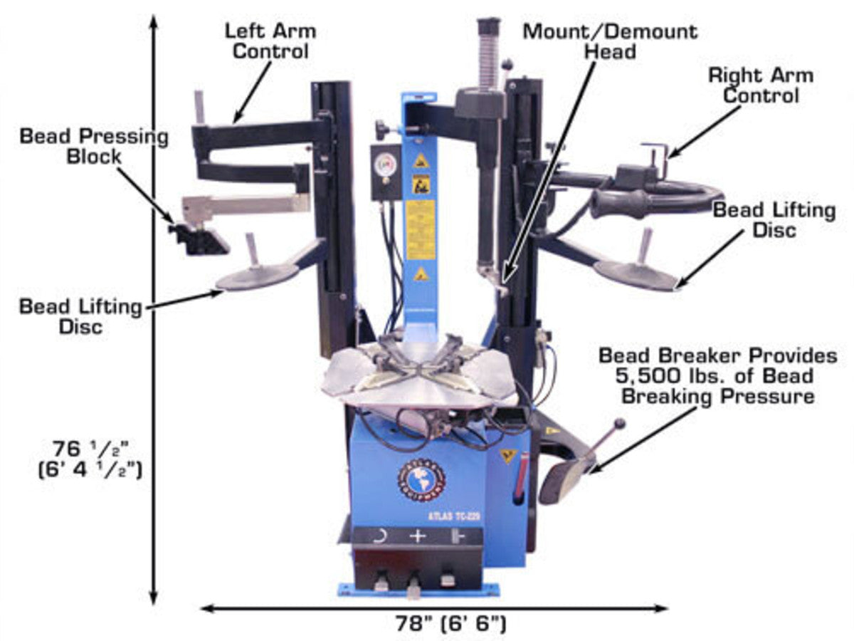 Atlas Automotive Equipment TC229DAA Rim-Clamp Tire Changer with Dual Assist Arms