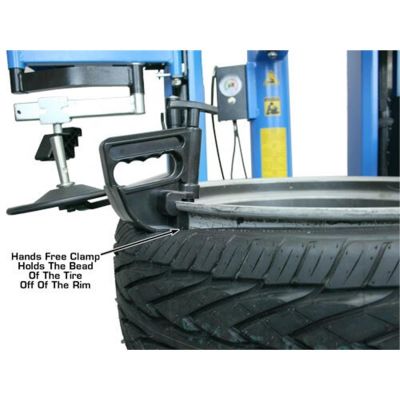 The Atlas hands-free clamp is the perfect solution to help mount the stiff sidewall tires found on many of todays vehicles.The Atlas hands-free clamp functions as "another set of hands" and allows the user to hold (and keep) the stiff tire bead below the edge of the rim and closer to the drop-center of the wheel while he concentrates on mounting the tire. Holding the stiff bead below the edge of the rim is necessary so that the sidewall of the tire has more "room" to move and flex. This extra "room" prevents the bead from being stretched as the tire moves over the mount/demount head, and allows the operator to "bar over the tire" with greater ease and less risk of damage to the tire.The Atlas hands-free clamp also increases user safety by allowing the user to concentrate on only one the mount/demount head when mounting the tire. If the Atlas hands-free clamp is not used, then the operator may try to "lean over the tire" to "hand-press" the bead below the rim�or another person may be needed to perform the "bead-pressing" operation.The Atlas hands-free clamp works perfectly with the Atlas brand of tire changers and is compatible with most other brands of wheel clamp tire changers.