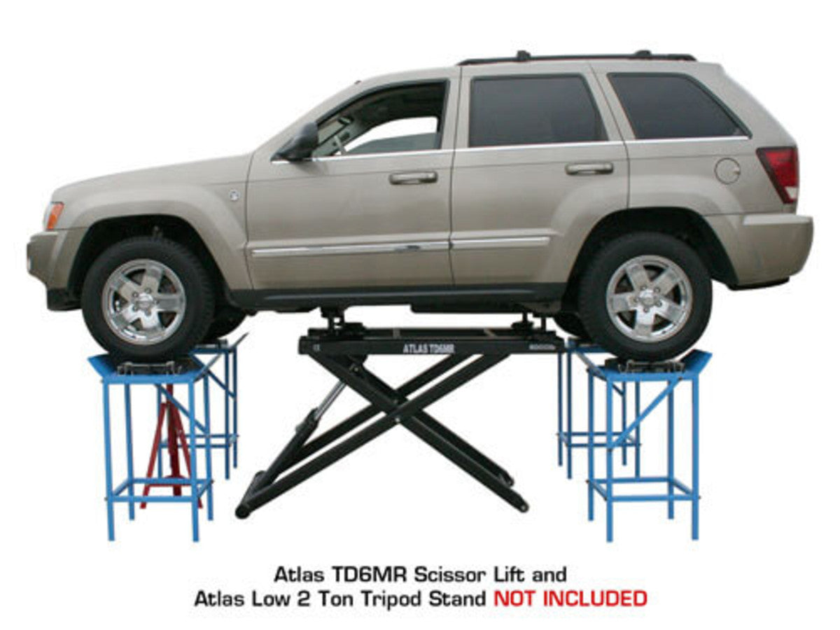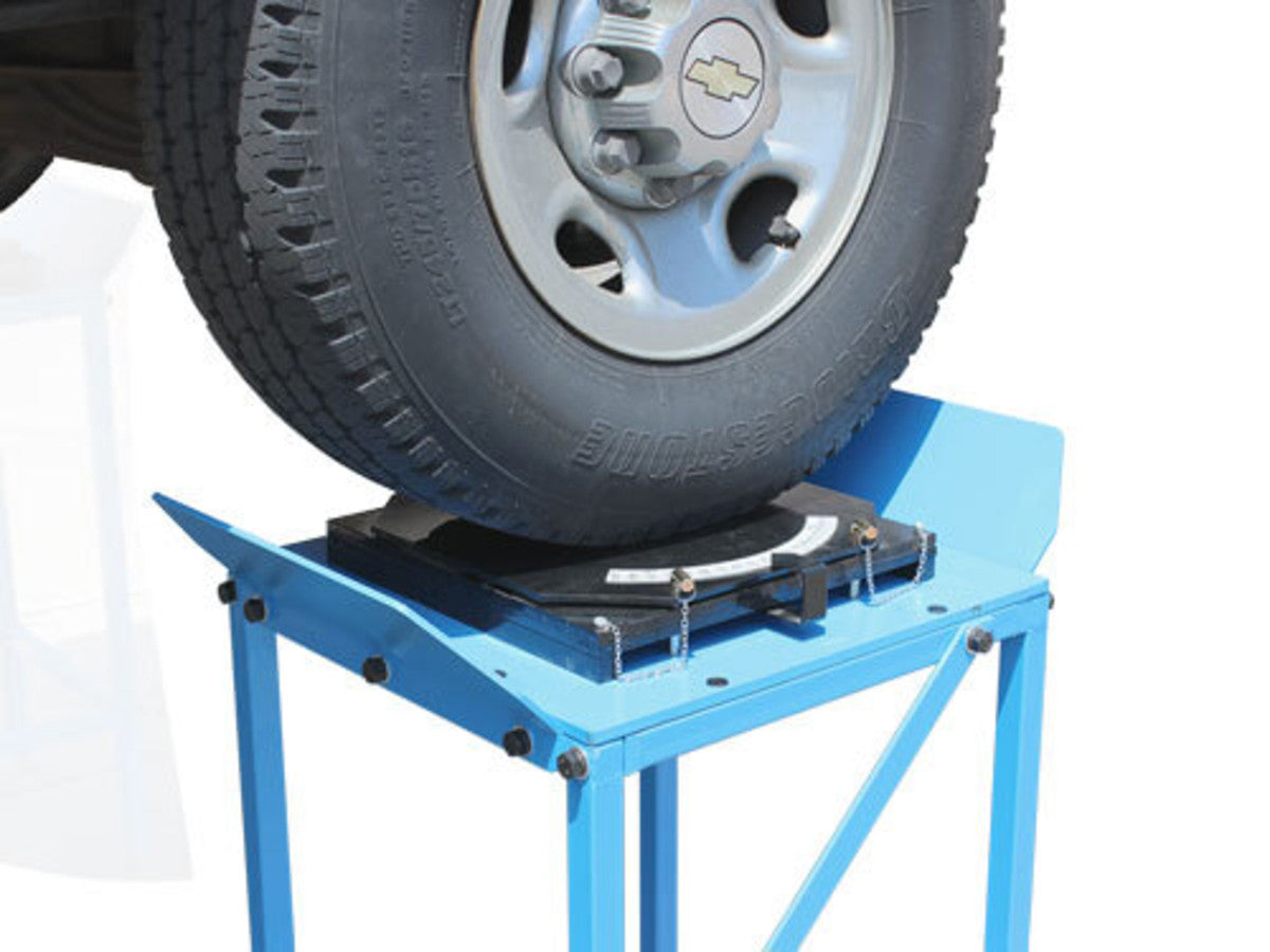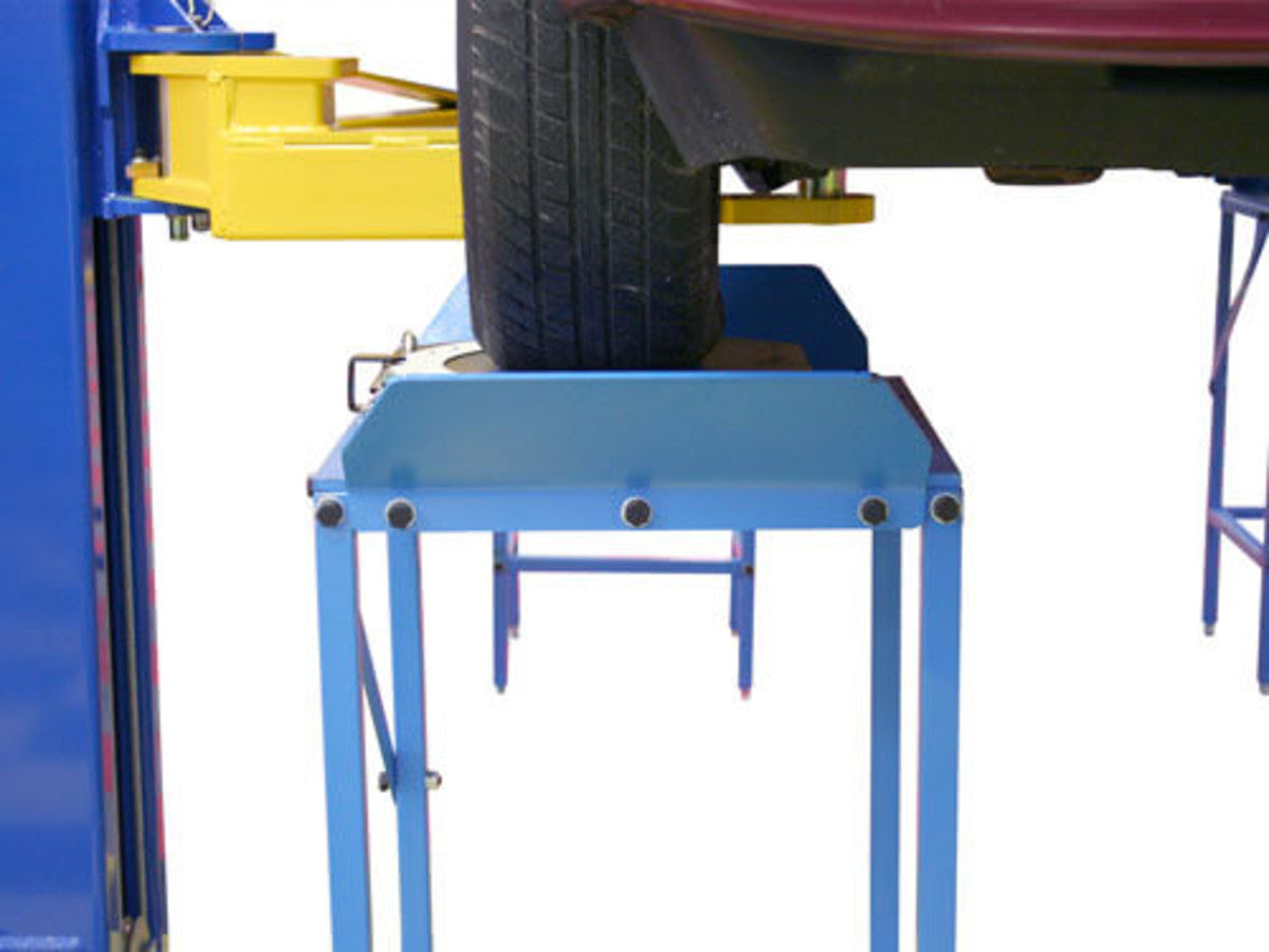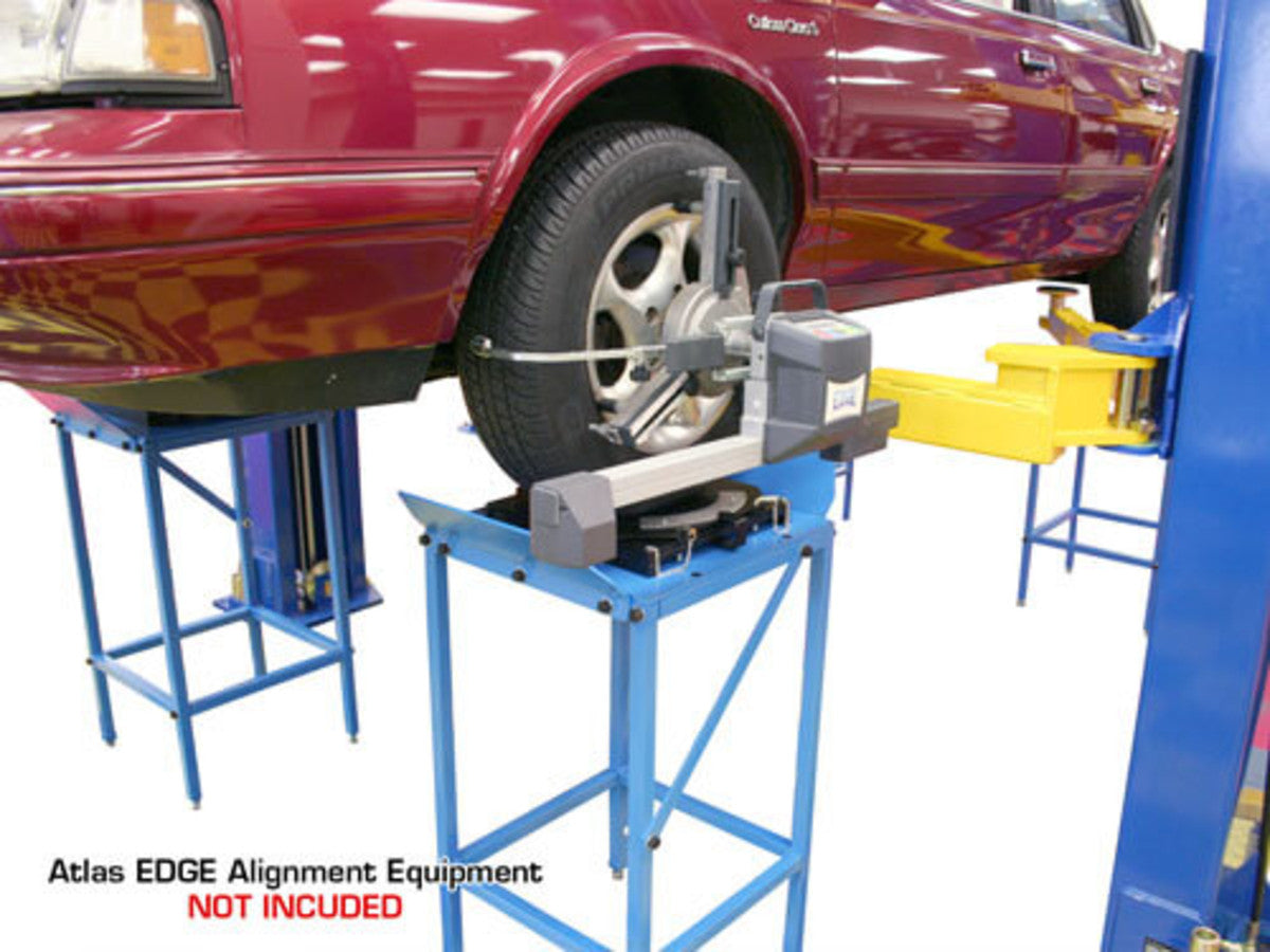 The Atlas® Wheel Stands are the perfect choice for those smaller shops who want the advantages of a four post lift but have only limited floor space. The set of Atlas® Wheels Stands can support up to 6,000 lbs. and, because they are taller than most other stands, are the perfect height for hanging wheel alignment sensors. Many shops do not have room for a dedicated four post alignment lift. These shops may have only two post lifts or midrise lifts in their existing facility. The Atlas® Wheel Stands can be adjusted (leveled) so that they can be used for wheel alignment. Simply place a turntable on each wheel stand and your two post lift has been transformed into a four post alignment lift complete with turntables and slip plates. Use the arms of your two post lift (or mid-rise lift) to raise the vehicle to perform lateral run-out compensation for your sensors or to make adjustments on the front or rear ends. The Atlas® Wheel Stands are also perfect for undercar service including exhaust and suspension adjustments and installations. The Atlas® Wheel Stands are the perfect choice for those two post lift owners who also want the many advantages offered by a four post lift, but just do not have the extra shop space.