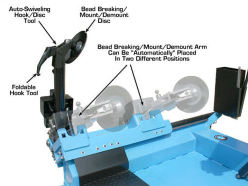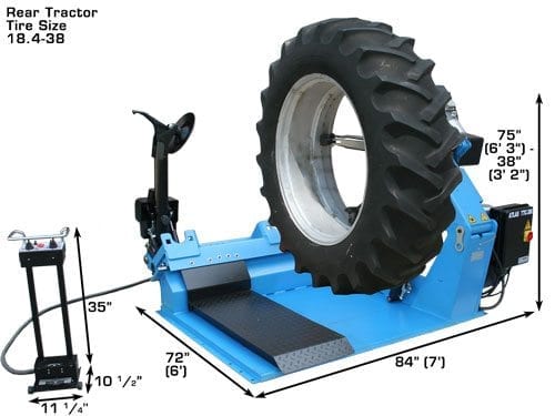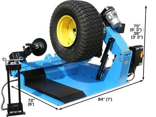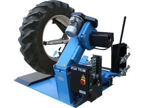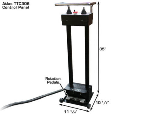 This Combo Package includes the Atlas® TC306 truck tire changer and the the heavy duty computerized Atlas® WBT-210 wheel balancer. The Atlas® TTC306 is very similar to the Atlas® TTC303, but with several additional features. The remote control allows the operator to move the bead breaker disc and mount/demount head automatically. This Super Duty Atlas® truck tire changer is designed and engineered to handle rim sizes from 14 inches to 56 inches and tire diameters in excess of over 97 inches. The Atlas® TTC306 Truck Tire Changer can easily accommodate tires with a maximum width of up to 53 inches. This is the perfect tire changer for those companies that need the extra capacity to change large agricultural and earthmover tires. The Deluxe TTC306 has identical features of those truck tire changers costing over $20,000..